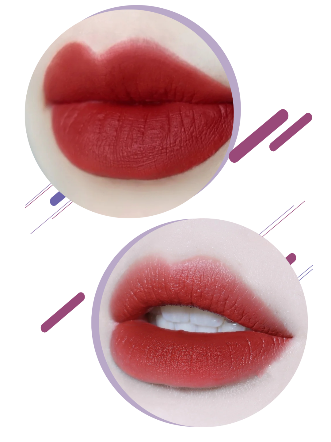 最喜欢它上唇的质感,丝滑绵密的奶油慕斯质地,滋润双唇不显唇纹。这个雾面比我们通常的雾面会润一些。