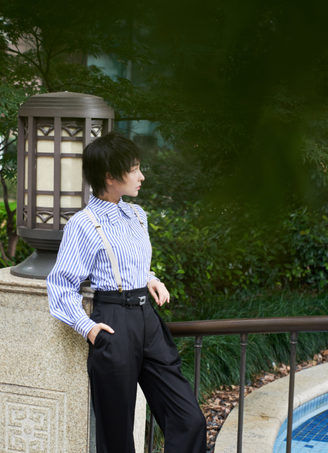 吴昕这套穿搭look也很漂亮,看着简单却又不乏时尚气息,着实很有吸引力;只见她穿着蓝白条纹拼色衬衣,版型款式比较简洁,蓝白色调清雅宜人;下面则搭配黑色背带裤,裤子采用纯黑色调,两条背带则是米白色,上身效果颇为减龄,加上短发造型,宛如小男孩般充满元气,青春洋溢活力十足。大家喜欢吴昕的穿搭吗?欢迎在评论区分享你们的看法哦。