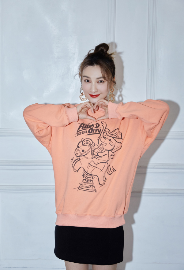 卫衣是种很常见的时尚单品,简约大方容易搭配,而且对身材有很高包容度,因而受到不少人喜欢。这次吴昕就对卫衣下手,肉粉色卫衣版型宽松休闲大方,将她身形衬托得更纤细窈窕,肉粉色调更减龄几分,身前用黑色线条勾勒出卡通图案,充满童稚气息,更凸显出她的少女气质;下面搭配黑色短裙,整体上身效果颇为迷人。