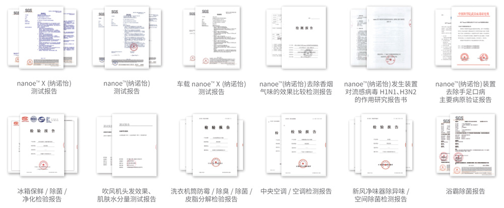 无论在日本还是中国,纳诺怡™均经过有关科研部门的检测。事实证明,可有效抑制空气中的细菌、霉菌及引发过敏的花粉等有害物质,并能分解异味,对肌肤、头发保湿,这众多功效源于纳诺怡™的五大优势: