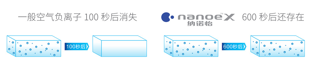 图:纳诺怡™比一般空气负离子的稳定性更强
