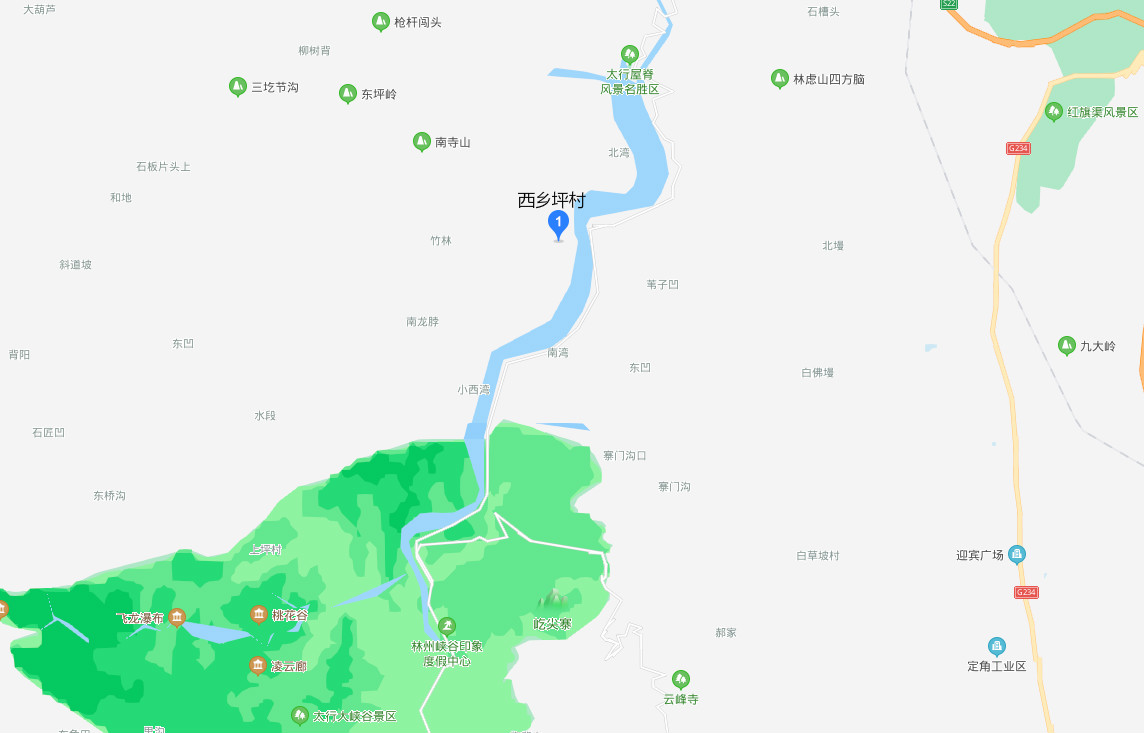整个村子依山绕水,西临太行主峰,东临林虑山峰,北边是太行屋脊风景名胜区,南边是太行大峡谷景区,国家级水利风景区——太行平湖(太行大峡谷河流"露水河"的拦河蓄水工程)在这里穿村而过,自然风光极佳。