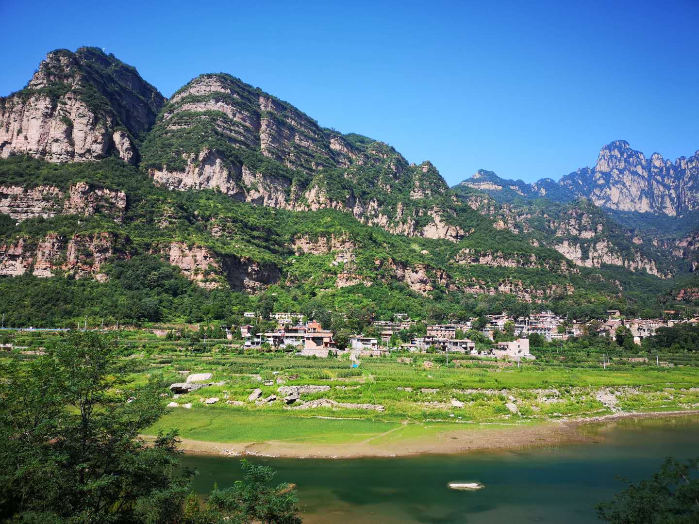 除了古色古香的民居建筑之外,村外的太行平湖也是吸引众多游客前往打卡的一处旅游胜地。这里是太行山的灵动之处,碧绿的湖水被巍峨的群山环绕,一年四季不同的景致,更是将这座古村点缀得绚丽多彩。