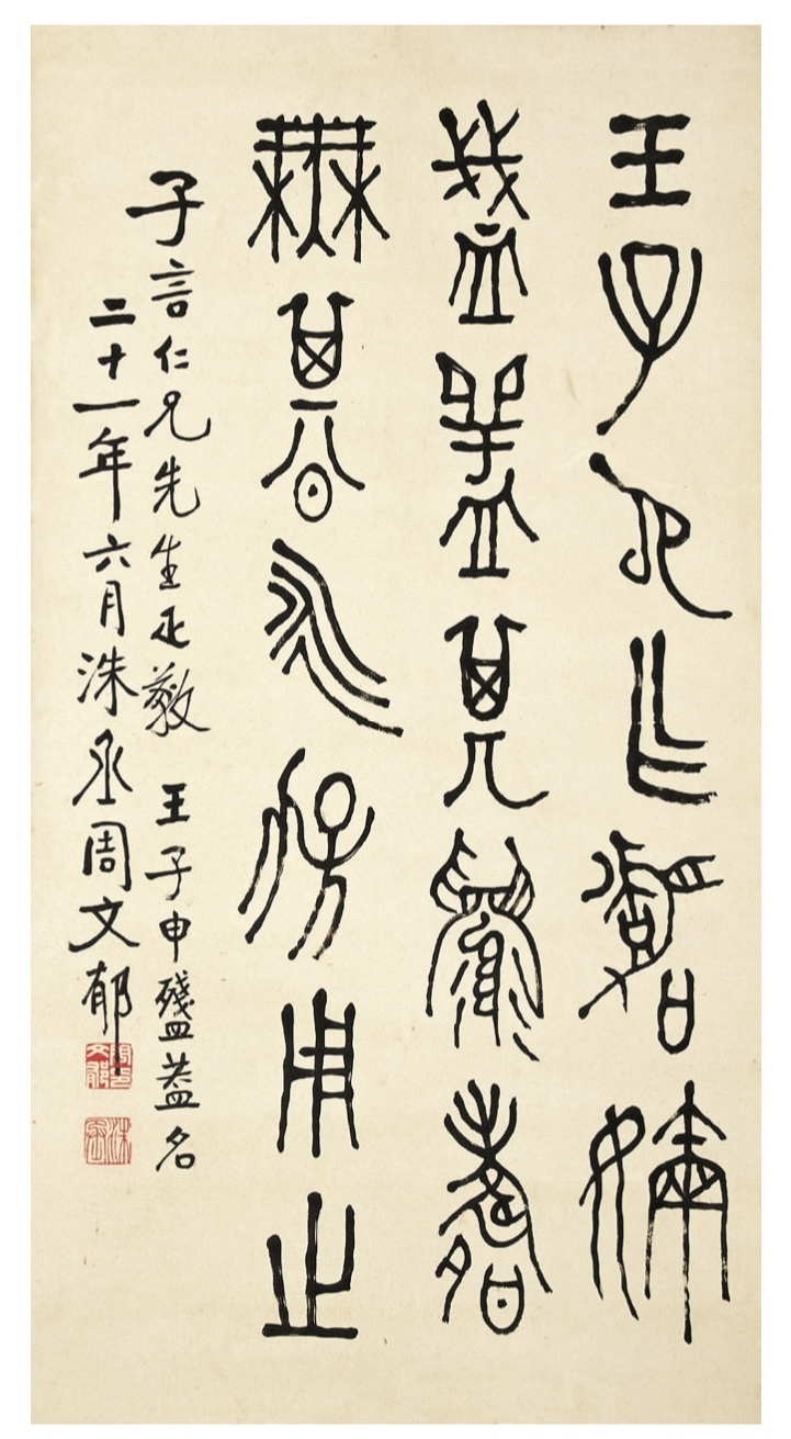 随意翻阅其中,可以看到四代作品各有千秋,一幅幅作品翰墨飘香,异彩纷呈,交相辉映:周文郁一代清流,精研六书,孜孜不倦遍临碑帖,气息高古,功力深湛;周世昌能书善画,虽为耄耋老人,犹怀赤子之心,笔底无半点暮气,字局宽博,苍逸超迈,笔力遒劲;周英杰书路开阔,篆隶楷行草五体皆工,填词作诗,笔墨苍劲;而周鹏程正值青年,草隶篆皆通,篆隶古拙朴茂,行草恣肆开阂,楷则巧拙相生,厚重不失灵动……