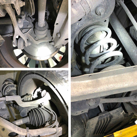 车辆的前后悬挂部位检测后同样也没有发现异常,固定螺丝均无拆卸痕迹,胶套无老化变形,各悬挂部位无变形损坏现象,综合判断前后悬挂目前为原车状态。