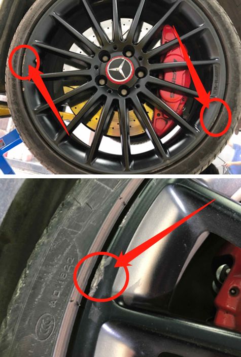 这轮毂的剐蹭挺有意思的啊,每个轮毂都是一上一下,这车的车主之前开去干啥了啊?难道是开到哪个夹缝里去......哈哈哈,但是这车也不太合适吧?