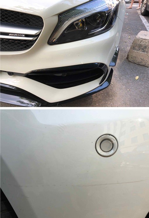 绕车一圈发现前后杠有一些轻微的划痕,不过此车全车贴有隐形车衣,划痕也只是在车衣上,并未伤到车漆,后期抛光即可处理。前后杠边角处无二次喷漆造成的和飞漆,脏点。