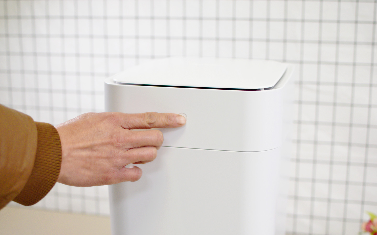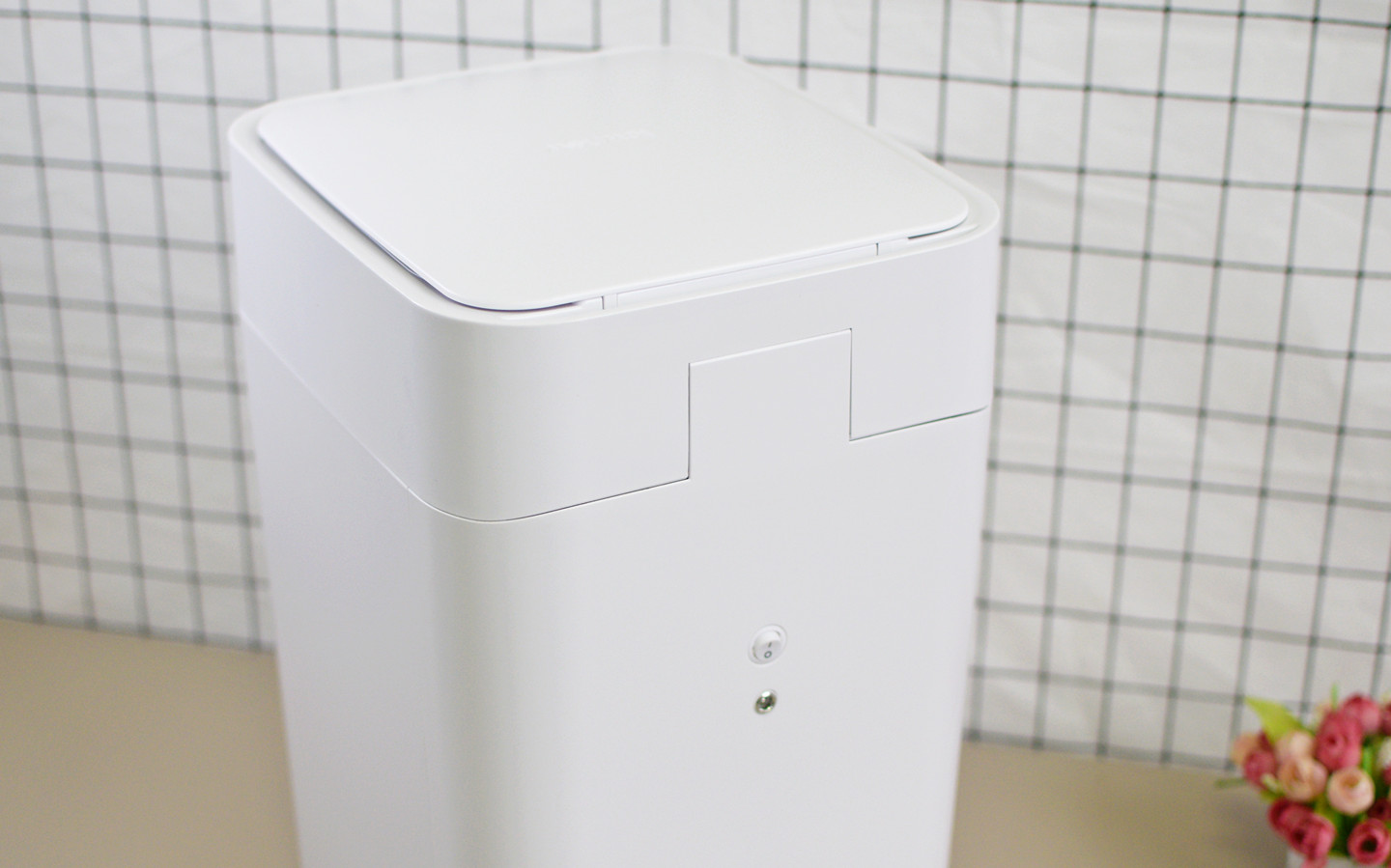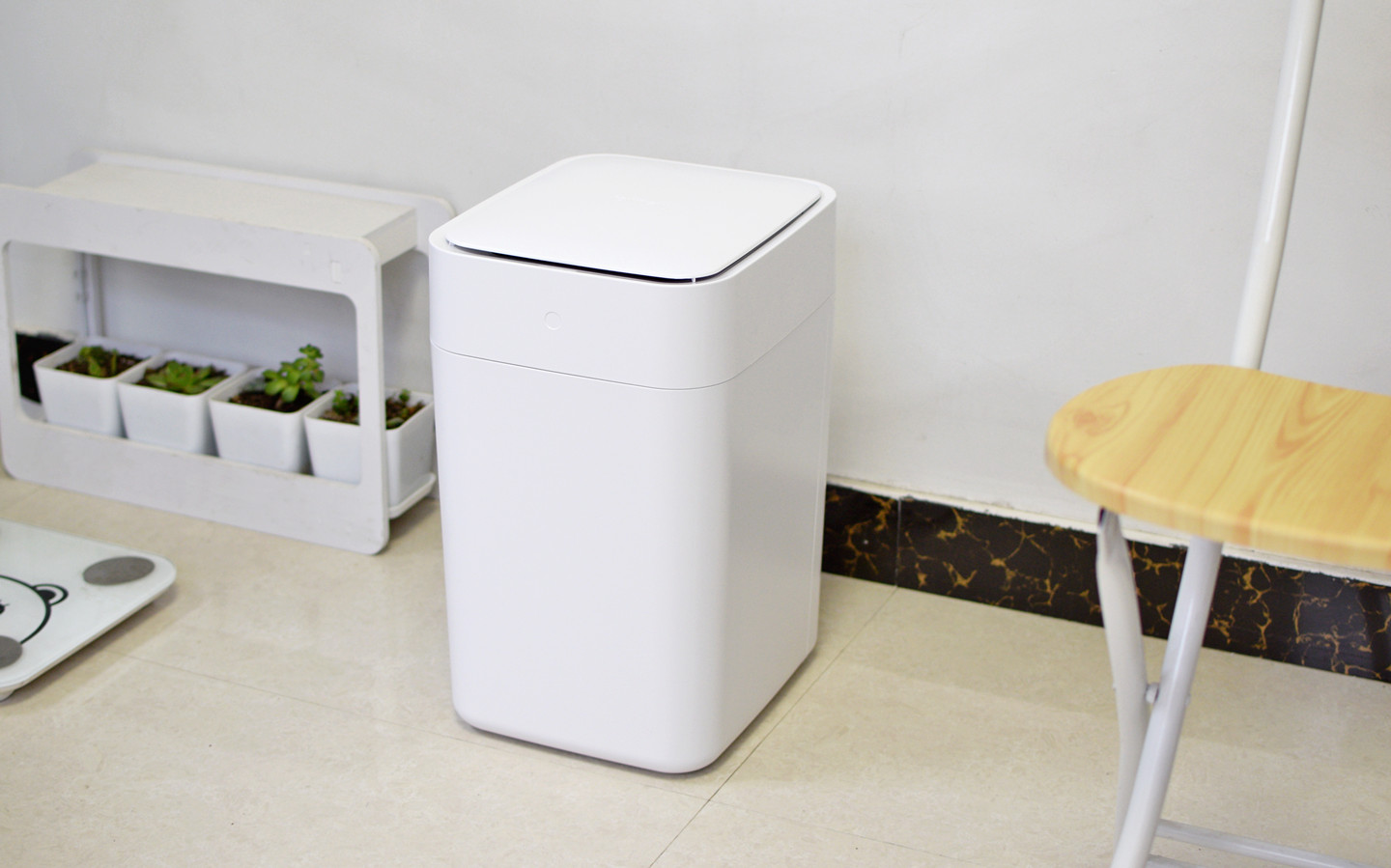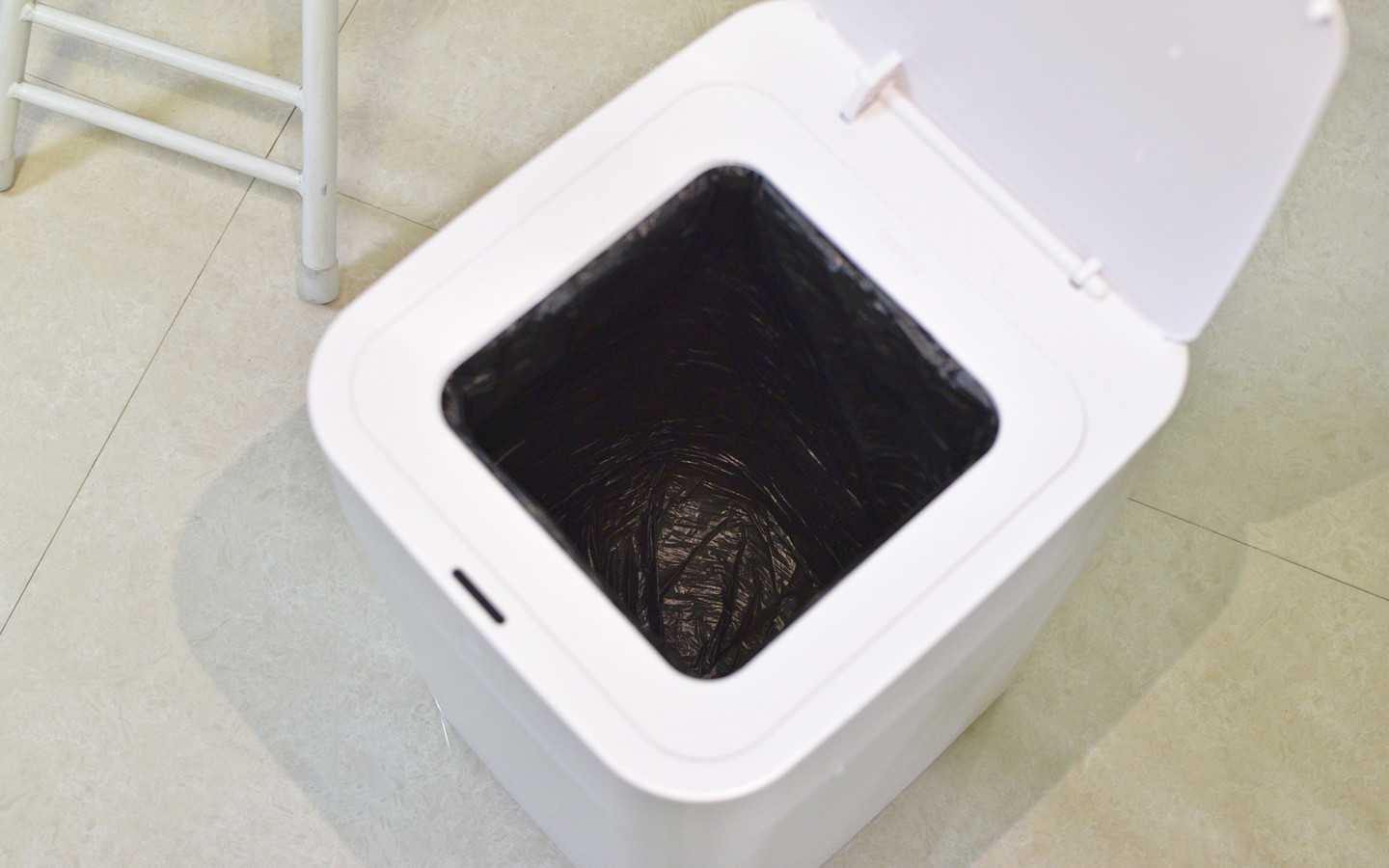 第一次使用之前,根据操作说明长按前面板的触控键2秒,听到桶内发出“滴滴”两声,内部风机装置开始运行,自动将垃圾袋铺好。话说这个操作还真的有点意思,像之前家里普通的垃圾桶,每次换袋,搞半天那个袋子还是揭不开,或者是铺到桶内没有完全张开,现在有了这款T1S,才知道原来还能这么优雅的装垃圾袋