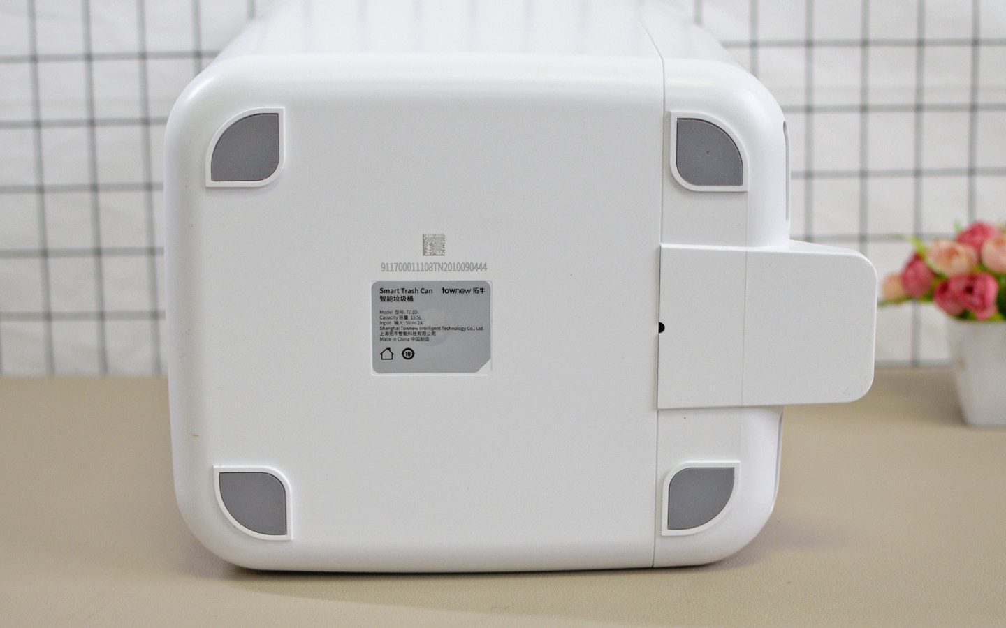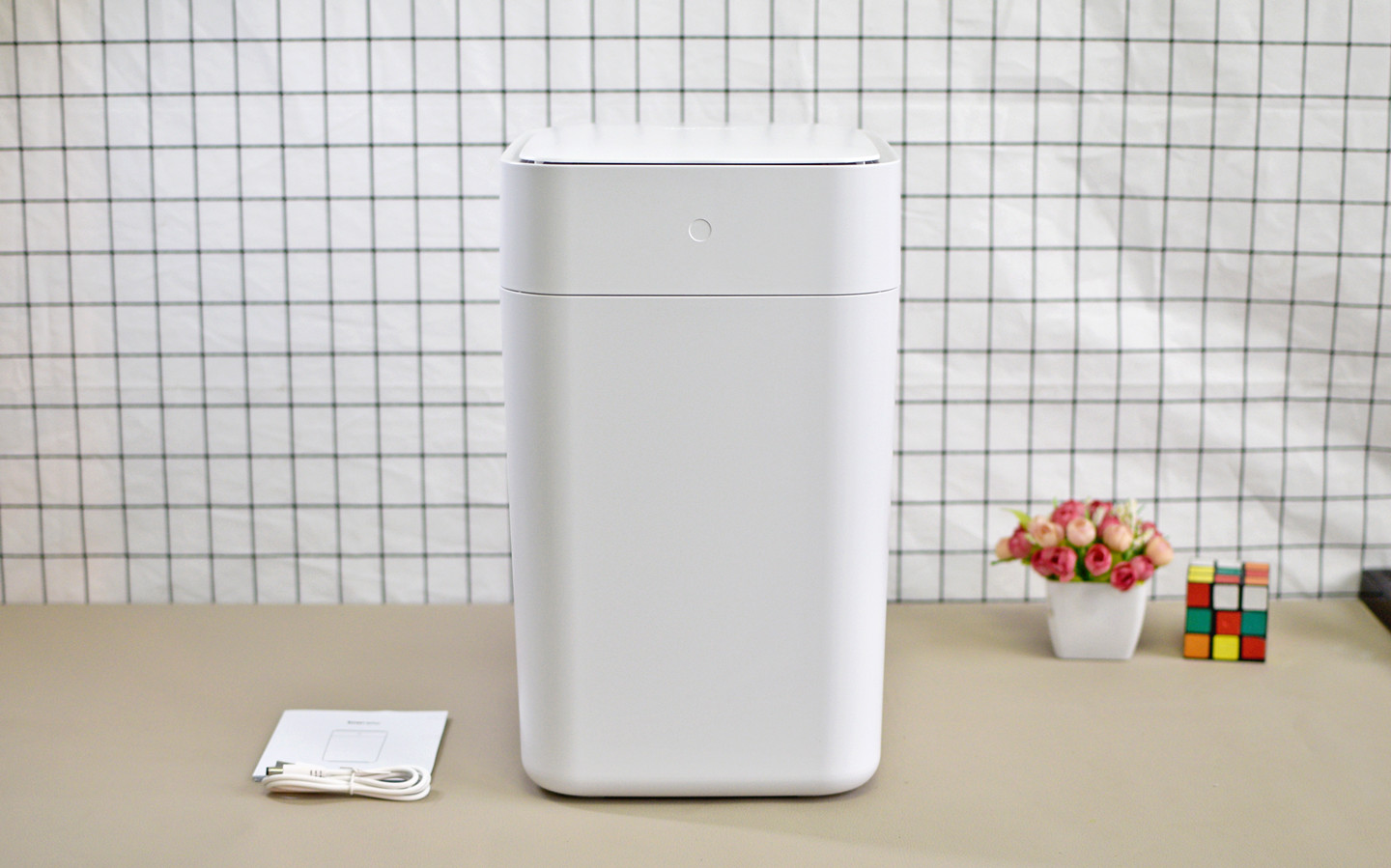 打开包装盒,里面上下层都有加厚设计的防撞块,以保障垃圾桶不会在储运的过程中被碰坏。配件方面只有一本说明书,和一根充电线,估计是考虑到每个人家里的充电头太多了,所以连充电头也没有标配。其他配件诸如垃圾袋,已经安装在垃圾桶内