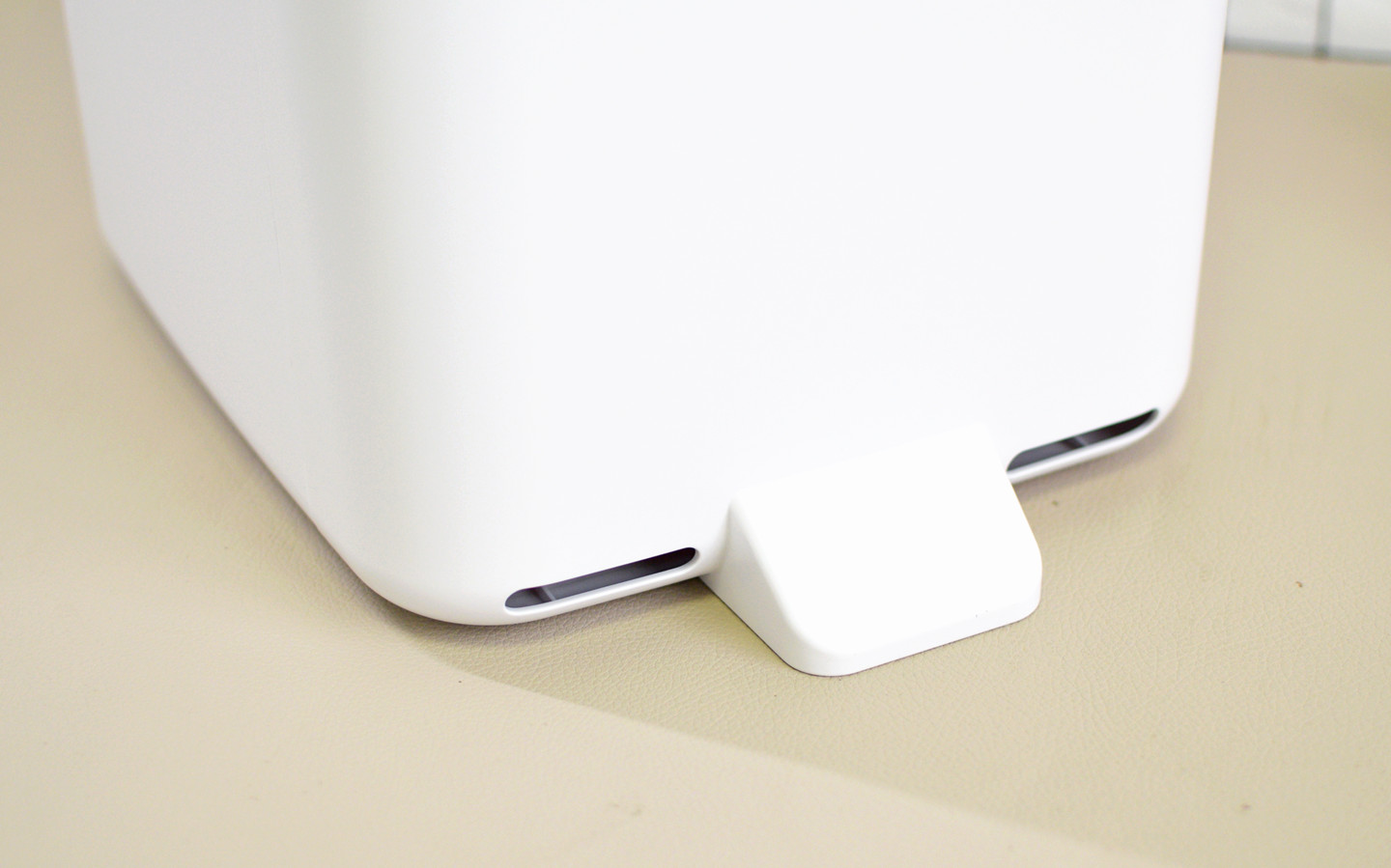 T1S上部前侧的这根黑条条,是它的红外传感器,通过上一代产品的大量实践和改良,这款升级版在红外感应方面做了很大的优化,距离感应更加精准,并且对膝盖靠近开盖等“极端”需求,也是有了进一步的提升
