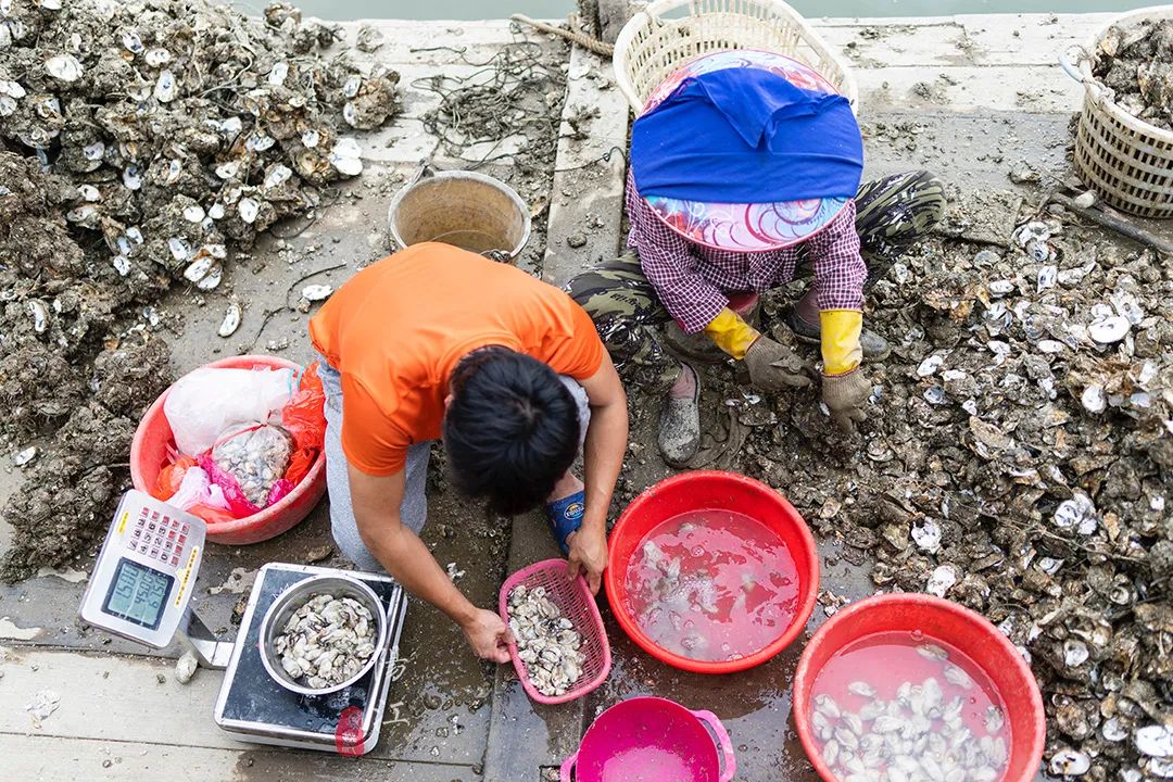 在村子里随意走走,就能看到正在处理生蚝的村里人。