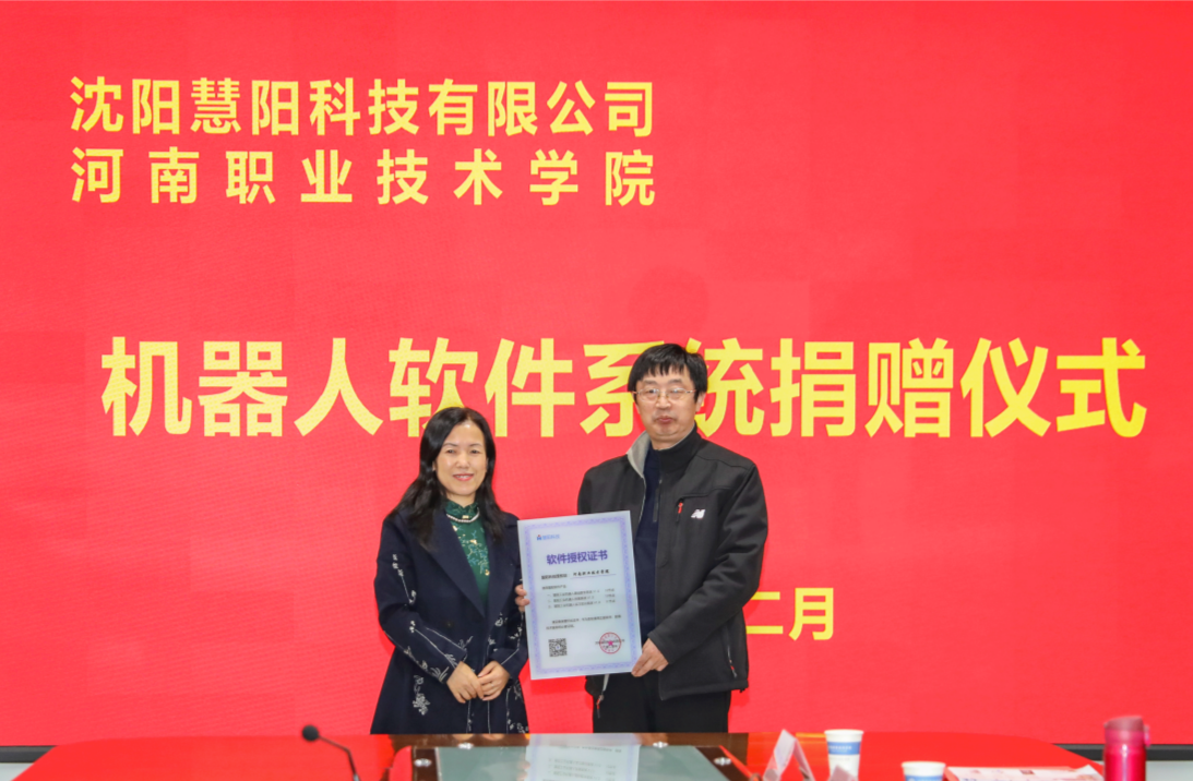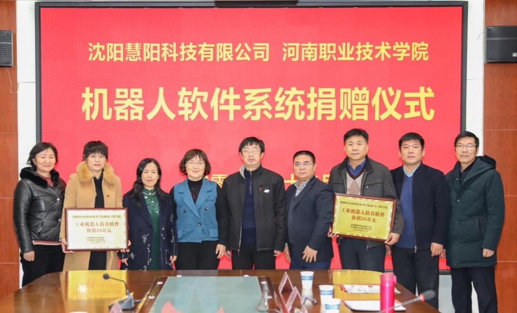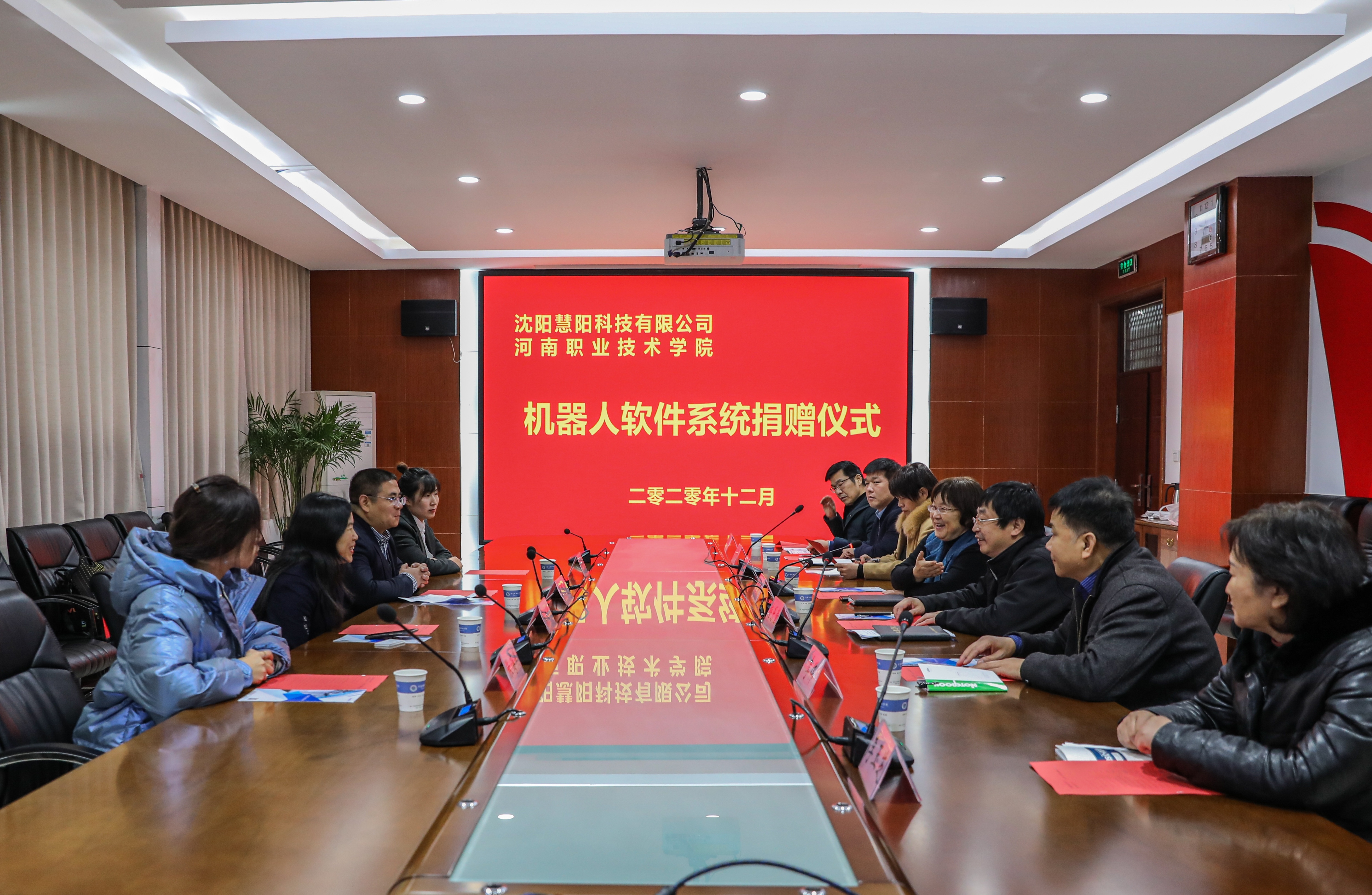 12月9日上午,河南职业技术学院、沈阳慧阳科技有限公司机器人软件系统捐赠仪式在郑州温暖举行。
