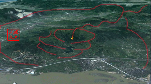 下图:后山来脉气势磅礴,顿顿迭迭,多重环抱,结穴之处,藏风聚气,为大风水宝地。