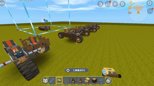 步骤一:不管建造任何载具都需要使用到机械车间,首先选择一处平整的地点,然后在地面上安放一个机械车间道具,接着就可以看到一个巨大的正方体的建造区域,玩家们就可以自由的在里面制作各种载具了。