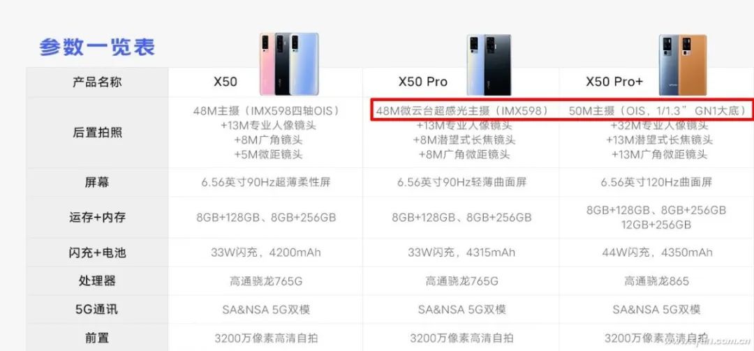 但是,就传感器的底层素质而言,vivo X50 Pro所搭配的索尼IMX598依旧属于中档级别,缺少了“底大一级压死人”的先天傲骨。因此,与其同期发布的X50 Pro+所采用的三星ISOCELL GN1就成为了让人羡慕嫉妒恨的存在,后者的传感器尺寸达到了破天荒的1/1.3英寸,拥有5000万像素值,支持Dual PD和Tetracell技术,单像素1.2μm(四合一等效像素面积2.4μm),其各项指标足以媲美索尼专为华为P40系列定制的旗舰级IMX700传感器。