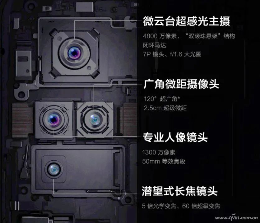 从X50 Pro的内部结构来看,其采用的微云台超感光镜头所占的空间相当于其他3颗镜头的总和,但也远远小于最初的设计,达成了小型化的既定目标。