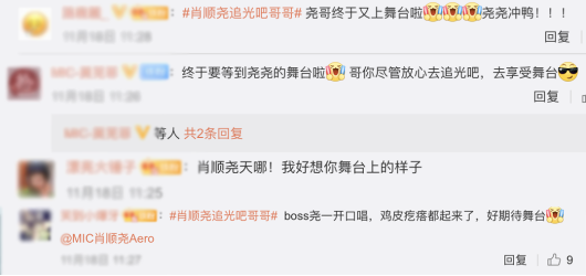 作为MIC男团成员之一,肖顺尧虽唱跳实力不俗,但近几年由于潜心拍戏,已经很少能在舞台上看到他的精彩表演了。这两年我们看到的是《军师联盟》、《虎啸龙吟》中的司马师;是《可惜不是你》中的林森;是《上锁的房间》中的李琰俊;亦或是《天醒之路》中的刘松......这一次,他选择回归舞台做回自己,证明自己。这也令大批粉丝激动不已:“活久见系列,终于又能看到在舞台上发光的肖顺尧了!”