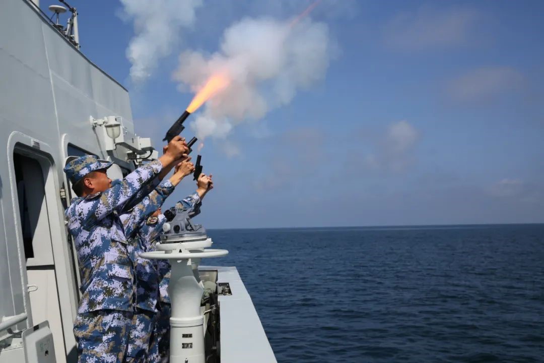 图为巡逻官兵发射信号弹