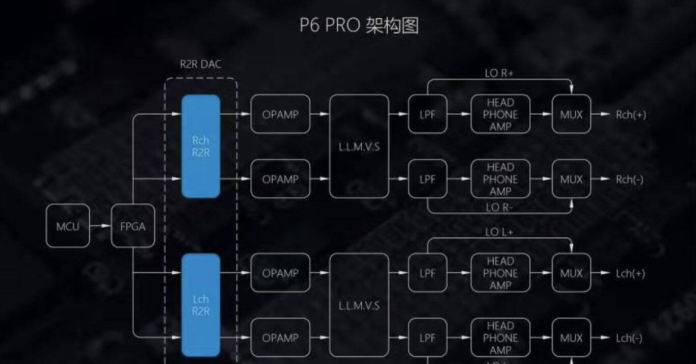 乐彼 P6 Pro 最大的特点是采用全分立 R2R DAC,精挑更高等级的万分之一精度电阻组成阵列,来实现音频信号数字 - 模拟的转换过程。这种方案此案只在少数台式 DAC 上应用,制造难度大。官方表示,乐彼 P6 Pro 整机信噪比达 125dB,性能几乎相当于两台 P6 并联,其动态表现也有十分大的提升。