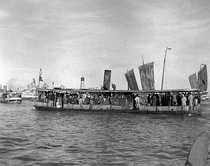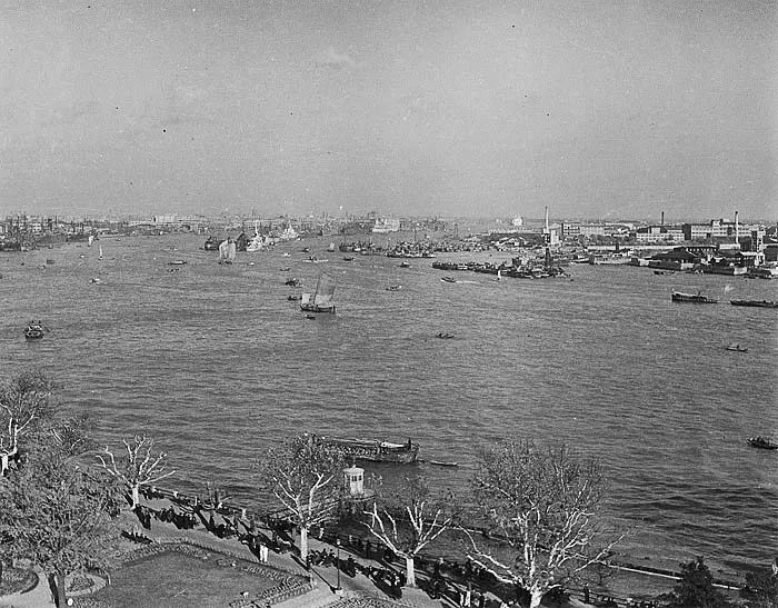 黄浦江上拥挤的船只