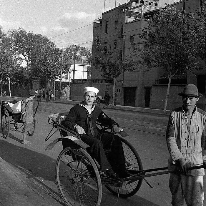1945年10月12日-1946年2月5日,美国海军驱逐舰联络船(USS Sierra AD-18)停靠上海。船上的一位海军沃特•阿鲁法特(Walter Arrufat)恰好也是一位职业摄影师。在上海逗留期间,他带着相机走街串巷,拍下了近百张记录上海历史人文画面的黑白照片。