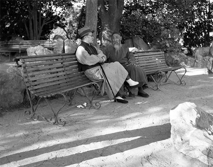 长椅上聊天的老人