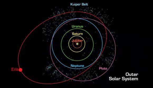 图表显示的是太阳外行星轨道,土星的轨道用黄色表示。Credit: NASA