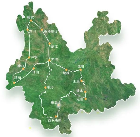 2019年云南启动了大滇西旅游环线建设,大滇西旅游环线最初涉及德钦、香格里拉、丽江、大理、保山、瑞丽、腾冲、泸水、贡山等地约1600公里。之后,在原有的基础上新增1600公里西南环线(昆明-玉溪-红河-普洱-西双版纳-临沧-楚雄),形成“8字形”大环线。