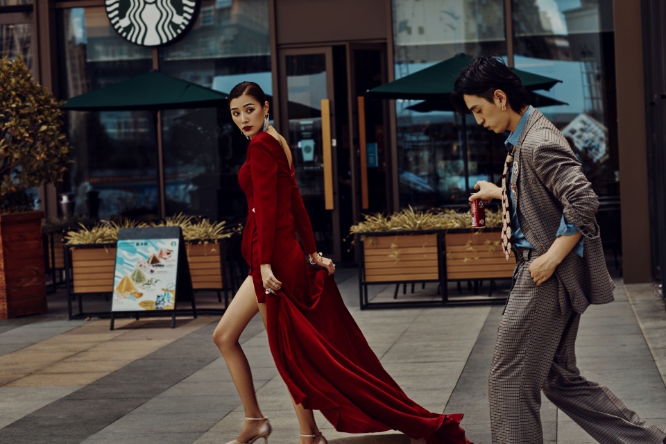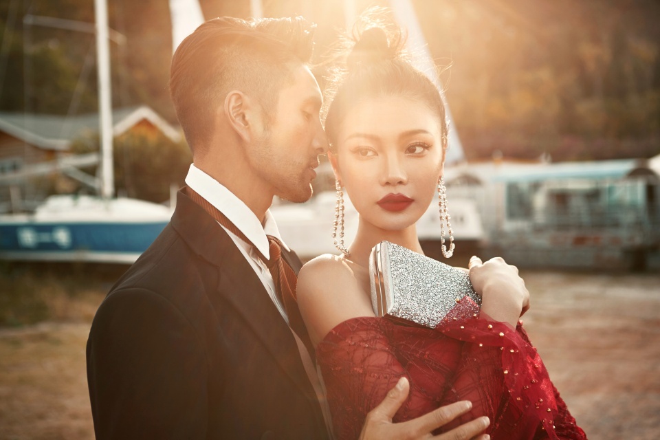 将拍摄主体和场景构架相结合,形成对斜线对角