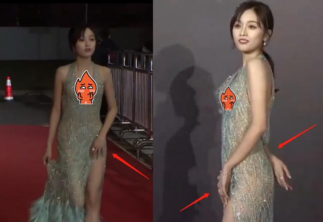 在走红毯的环节,或许是因为礼服开叉太高,吴宣仪一直用左手紧紧捂住开叉处。等走到拍照处,吴宣仪调整姿势,两只手一前一后挡住关键部位,听到摄影师喊"看这边",吴宣仪小心地挪动角度,动作略显局促,因为担心走光一直没有正对镜头。