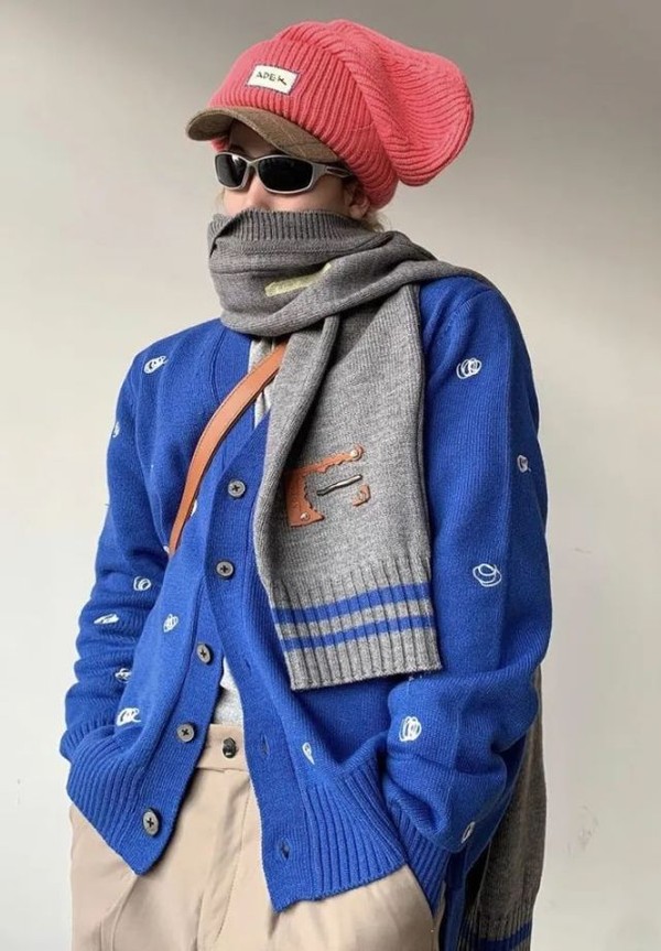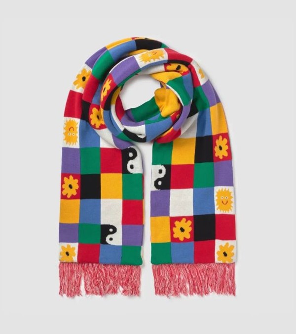 谁能想到仅仅一条围巾上面能有那么多颜色,这些“无厘头” 的撞色,把各式各样明艳的色块聚在一起,看得多了,不知不觉就会被洗脑。