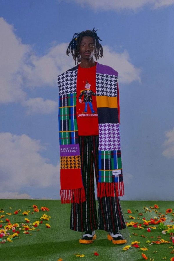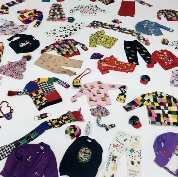 相比于其他品牌的造型奇特,Outsiders Division更喜欢把心思用在颜色拼接上,用活力色彩、几何图案、“稚气”元素贴成一件件“艺术品”。