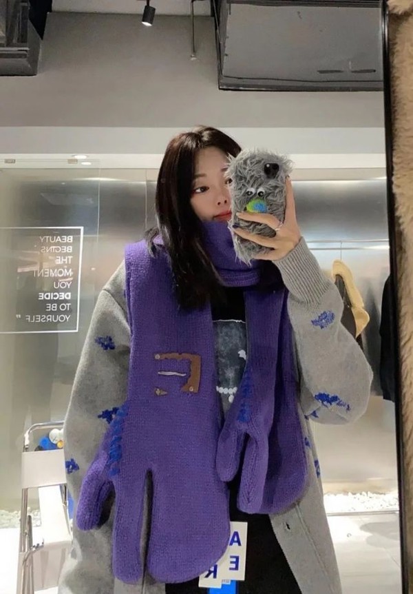 最奇奇怪怪可可爱爱的就是这条手指围巾,戴上后就像被一只大手抱在怀里,今年冬天不用找男朋友了,这条围巾足够温暖拥抱你。