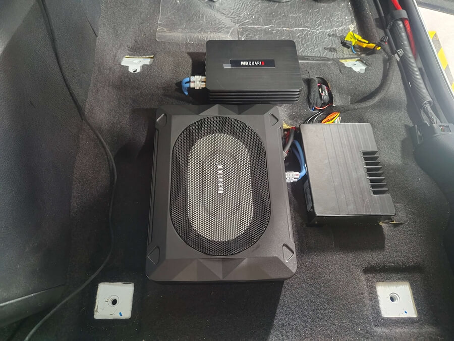 最后在座位下面加装一台DSP,用来推动声场喇叭工作,再加装一台艾斯科低音炮,补充低频,使得音响效果更具有立体感,音乐的感染力更强。
