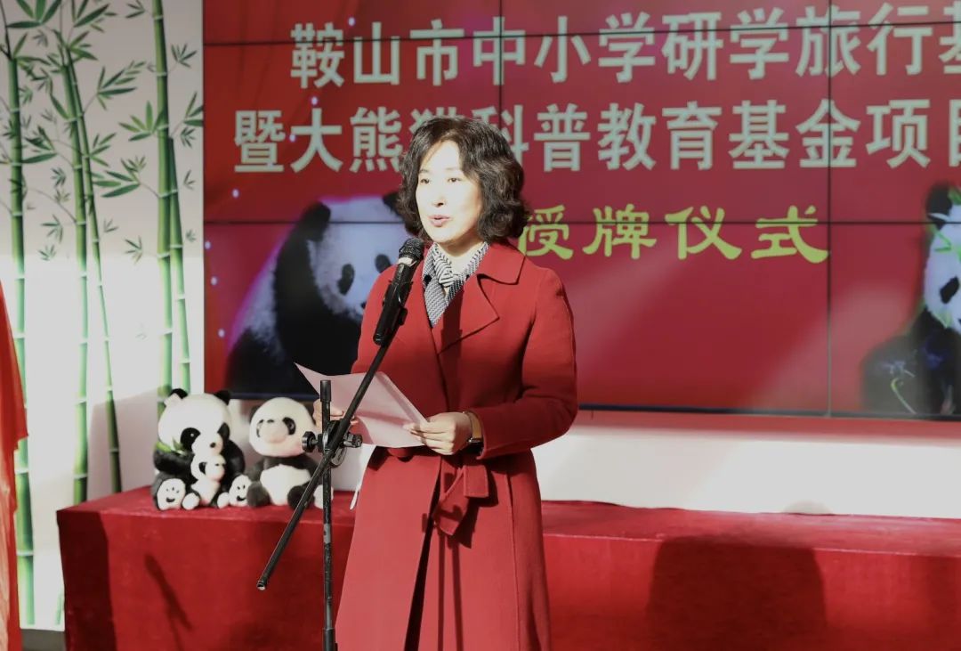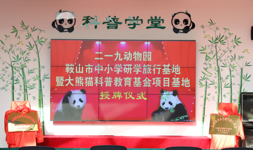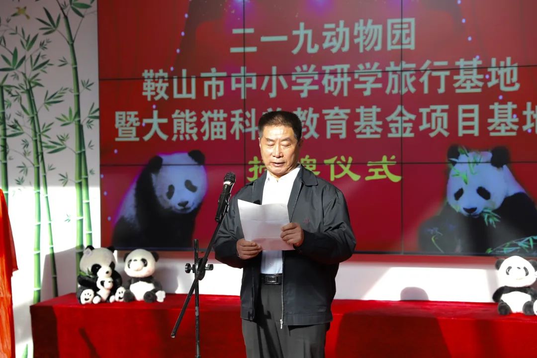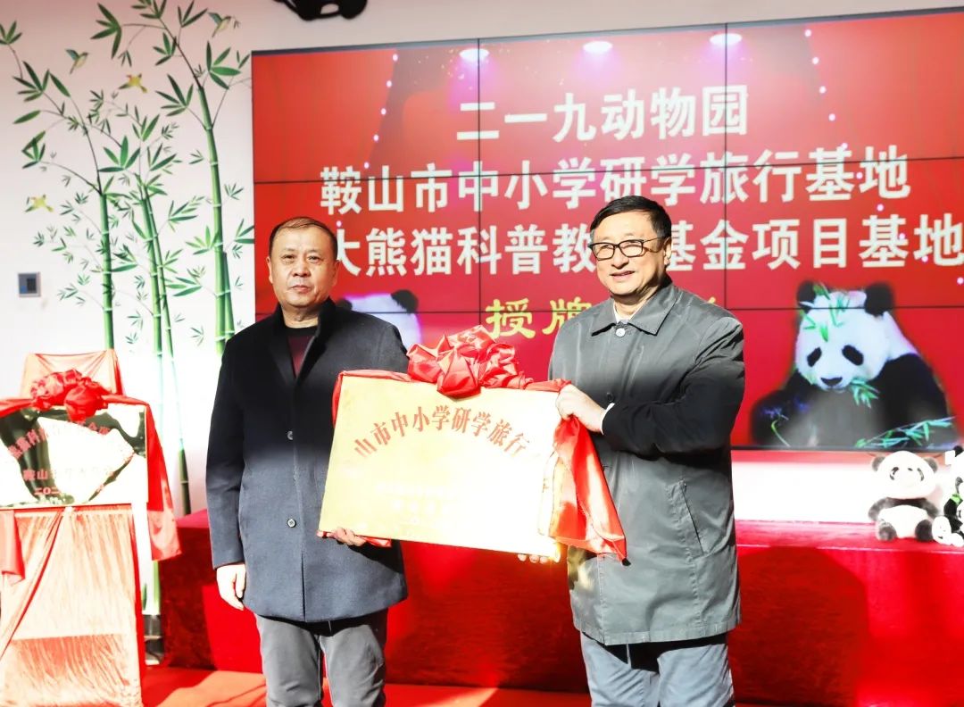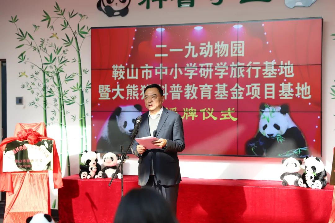 12月2日上午,鞍山市中小学研学旅行基地暨大熊猫科普教育基金项目基地授牌仪式在二一九动物园大熊猫馆隆重举行。