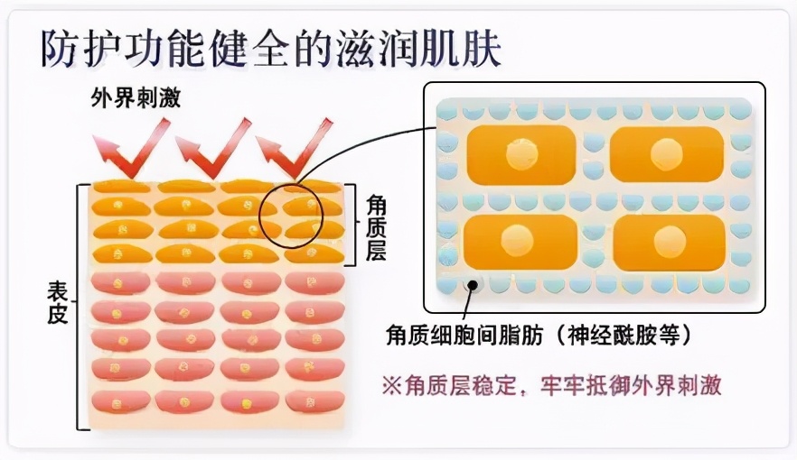 既然第一问里提到了角质层,那小编也一起科普一下叭。角质层就像是一堵城墙,保护着我们的皮肤不受外界刺激。而角质细胞和神经酰胺分别是砌成这堵墙的砖块和混凝土。就像一堵墙不能缺失砖块和混凝土一样,我们的角质层也不能缺失胶质细胞和神经酰胺。一旦缺失,各种肌肤问题接踵而来。