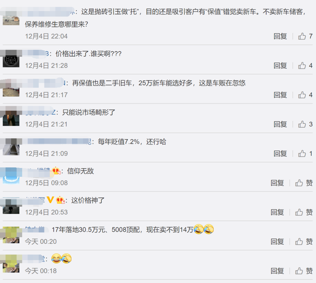 当然也有网友分析称“有价无市”,可能是经销商为了卖新车所做的宣传。该网友称:“这是抛砖引玉做‘托’,目的还是吸引客户有‘保值’错觉卖新车。”