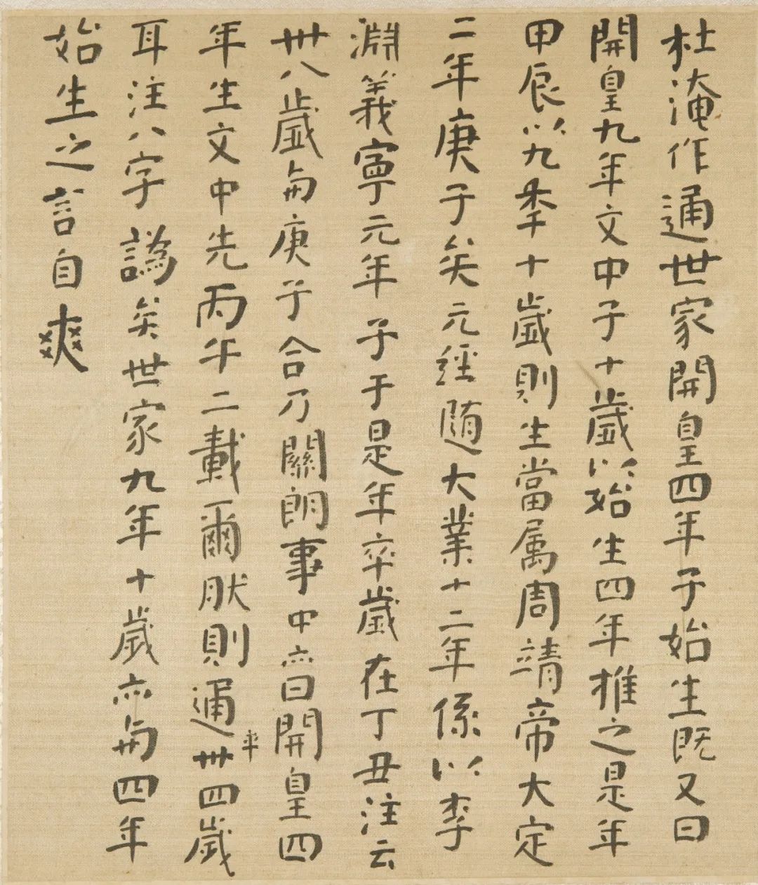 但作品最令人惊奇的地方就在于此。尽管没有规矩和边界,看似杂乱无章、毫无头绪,但我们的大脑却能自动地把偏旁部首凑到一起,帮助我们完整地认出整篇作品的含义。相比较清朝流行的“馆阁体”而言, 如果说“馆阁体”是照片,是写实,那这幅楷书就可以称之为书法中“梵高的星空”,是写意,是突破规则篱笆后的自由散漫,是拓展书法审美方向的创新,更是提高书法艺术生命力的有益尝试。 点画粗拙笨重却又张力满满,章法散漫自由却又生机盎然。就此,我们可以深刻地理解傅青主一直所推崇的“支离”一词的含义。甚至从某种程度上而言,“支离”都可以称为是这幅作品的代名词。