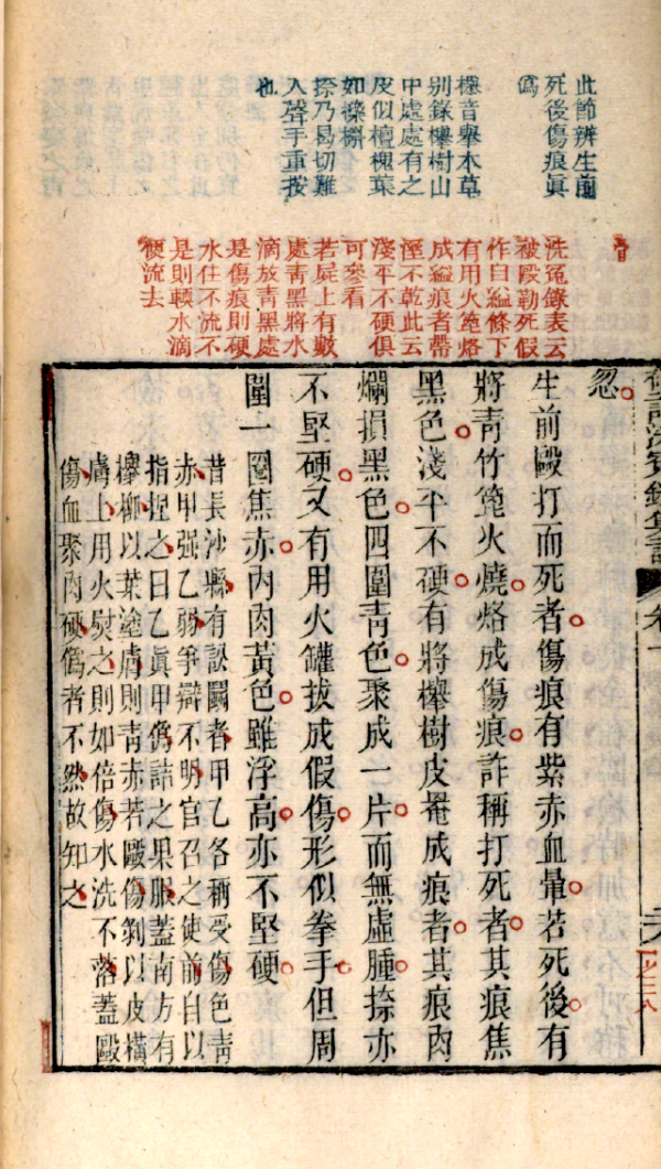 《重刊补注洗冤录集证》,1843年三色套印版。可是,哪怕验尸人水平再高,由于尸体会随时间的推移发生变化,为了鉴定一些痕迹,晚清民国的仵作和法医有时不得不从腐烂的尸体中提取遗骨。考虑到这项工作的技术难度,清政府还专门出台了相关技术标准。然而,技术并不是唯一的问题。按照中国传统伦理,身体发肤受之父母,开棺提取遗骨,是违背儒家风俗习惯的。不过,出于维护死者名誉和寻求公义审判的考虑,从法医记录看,开棺验尸在清末还是相当普遍的,特别是死者的近亲属,不时要求重检尸体。例如刘广聚一案中,刘广聚的姑姑不同意验尸官的结论,她认为有人收了贿赂,对遗骨上出现的颜色做出了错误的解读,因此要求重新验骨。到民国时期,当检测变得越来越专业,地方的检测人员因缺乏经验,已经无法独立完成职责,不得不请北京检察机关派出专家负责遗骸检测。换种角度看,这意味着中国的法医实践已经很大程度上融入了国家治理体系之中。但这也在一定程度上降低了法医鉴定的独立性,毕竟官员可以利用手中的权力来影响检测结果。