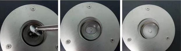 3、将样品放入设备中,左边放空坩埚,右边放入样品坩埚。