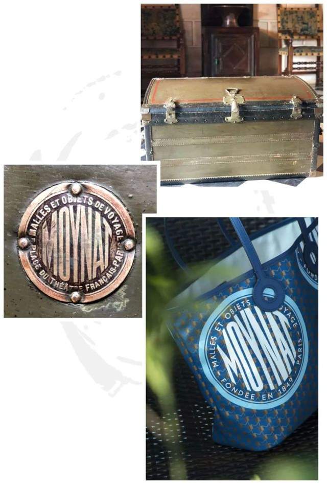 早在20世纪初,那会儿从建筑行业开始兴起Art Deco风格,MOYNAT摩奈的这枚徽章图案也是从那时候出现,后来还被用为褒奖手工技艺的“奖章”,他们家早期很多行李箱上都能看到。这次放大运用到新款包包上,也算一种情怀和对工艺的肯定。