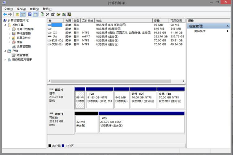 使用卡套接入笔记本,能够快速地进行识别,能够看到它的实际容量为232.79GB,预留了32MB的空间,实际容量与标明容量的差异值的问题,可以说早已科普至人心,在此也就不过多阐述了。