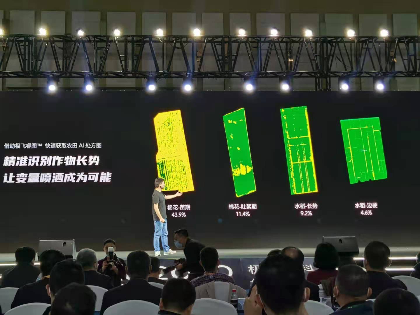 除了无人机、无人车等硬件,极飞这次还重点介绍了“AI处方图技术”。彭斌表示,处方图通过减少农药化肥使用,不仅能够降低农户和农事服务队的经营成本,还有助于打造绿色可持续的生态环境、提高农产品的质量和安全。然而此前,处方图作业在农田植保领域还未得到真正的落地普及。