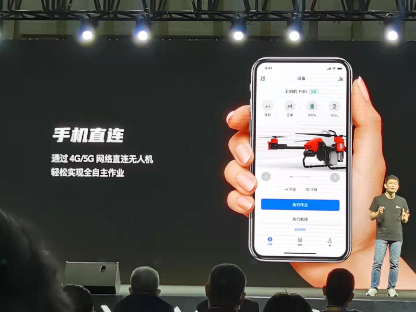 值得一提的是,新机使用的是全新的极飞农服APP,其通过4G或5G无线网络连接无人机以求更轻松、更便宜地实现全自主作业。关于信号覆盖问题,极飞CEO彭斌在媒体群访环节称,目前中国的4G信号覆盖率已达98%,在农村也早已不用担心信号问题。