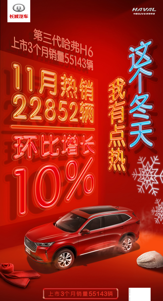其上市首月销量即破万,10月、11月,连续两个月销量破两万,上市至今短短3个月,第三代哈弗H6已拥有55143名车主。基于用户理念,满足用户对智慧安全车生活的高品质追求,第三代哈弗H6于日前完成智能安全FOTA升级,不仅提升了用户的体验,更是彰显出品牌“与用户共创”的思维,成为业界关注焦点。
