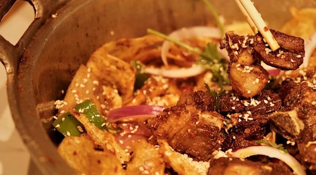 这道炕锅羊肉一定要在西宁多吃几次,出了西宁就完全享受不到了。使用新鲜羊排,配合洋葱、土豆、大饼、粉条等,先炸后炒最后焖熟。