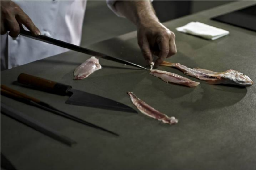 这种板材说的直白一点就是把优质的石头打成粉末,然后再粘起来,因为只有3mm厚所以又被称作超薄岩板。这种岩板硬度高、不易脏并且可以直接火烤超级耐高温,不像大理石遇见过高的温度会有开裂。
