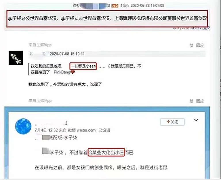 知名短视频博主李子柒也曾多次惨遭黑公关毒手,不仅多次被营销号或者网络水军在社交媒体上造谣其已婚,甚至造谣其“老公”是世界首富及某上海影视传媒公司董事长,直指其为插足他人感情的“小三”。
