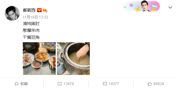 只看张若昀把自己微博经营的跟美食博主似的,一日三餐色香味俱全。