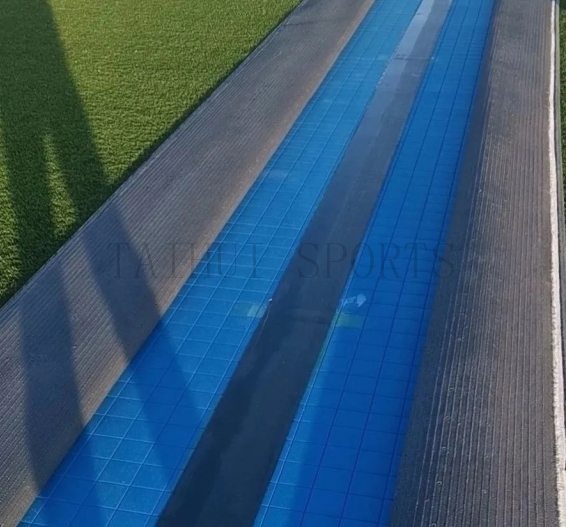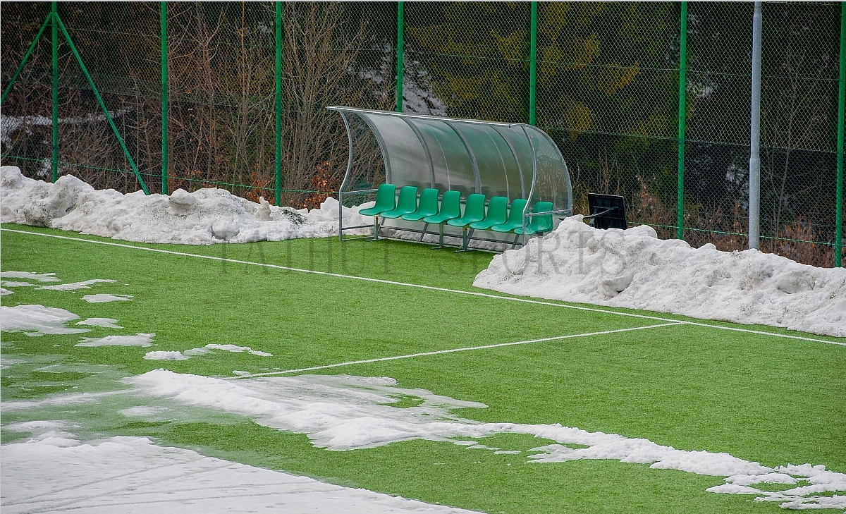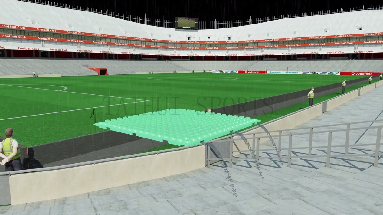 冬季,要注意排水,在积雪溶化后就要使人造草坪的水分能够迅速排出,防止浸泡,所以在购买人造草坪时最好选择草坪底背有排水孔;同时在构建场地时,要考虑人造草坪基础的排水建设,基础的坡度和排水沟的处理。高端场地现在配置减震垫的比较多,减震垫的排水性能非常高,排水速率快,而且对运动人员的减震保护也好。也有一些免填充方案可以采用,比如泰辉导流板就可以用于人造草坪系统里,来提高排水速率。